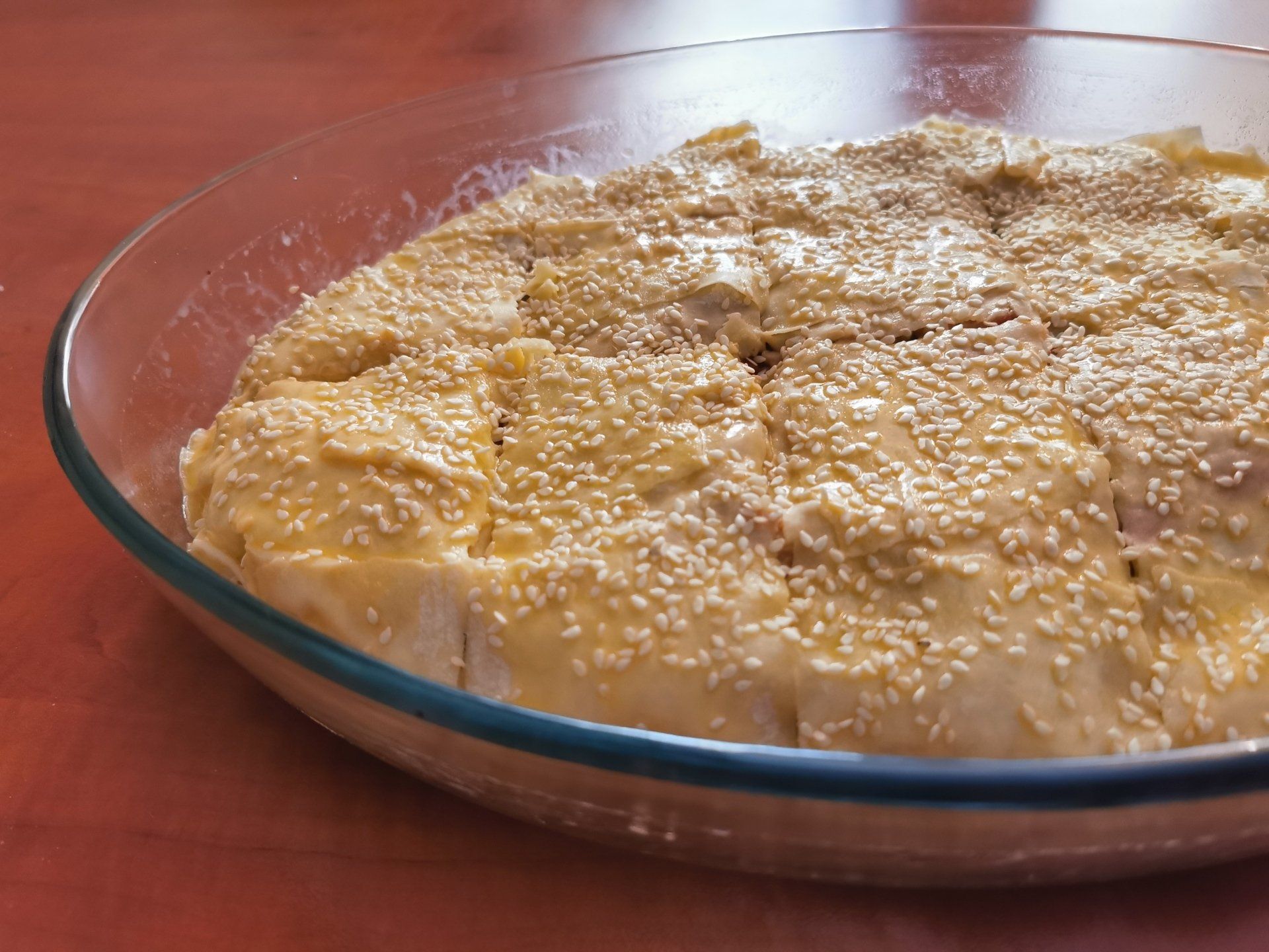 - Πασπαλίζουμε την πίτα με σουσάμι
